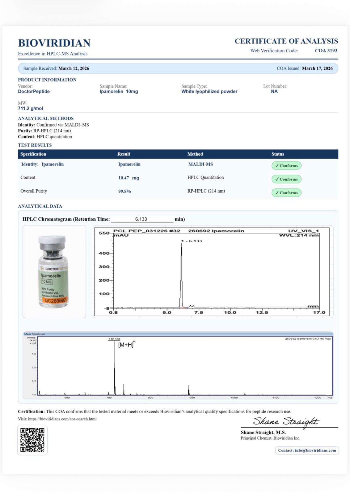 Ipamorelin is a synthetic peptide that has been investigated in preclinical and experimental research for its alleged roles in growth hormone signaling and related cellular pathways. Scientific studies have explored its potential influence on endocrine regulation and tissue signaling; however, these effects remain investigational and are not clinically established. Ipamorelin is not an approved drug or dietary supplement and is supplied for research use only. Not for human or veterinary consumption.